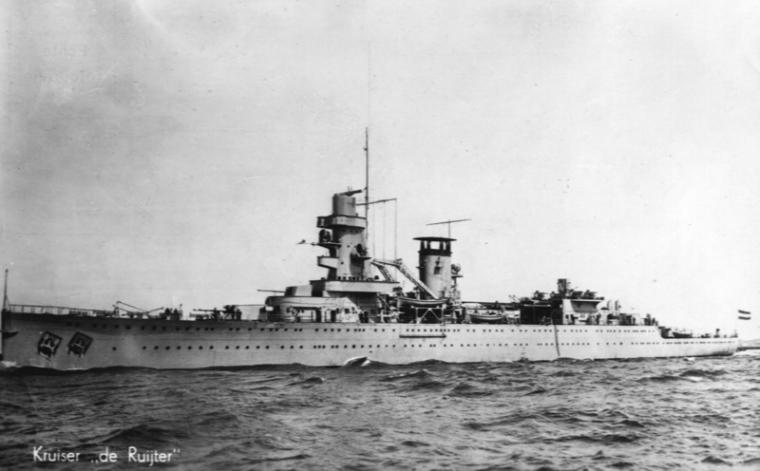 De Ruyter in her camouflage scheme, most likely in January of February 1942. The photo was taken from the Australian minesweeper HMAS Ballarat. (Collection HMAS Ballarat Assocation, via Peter Cannon). |
